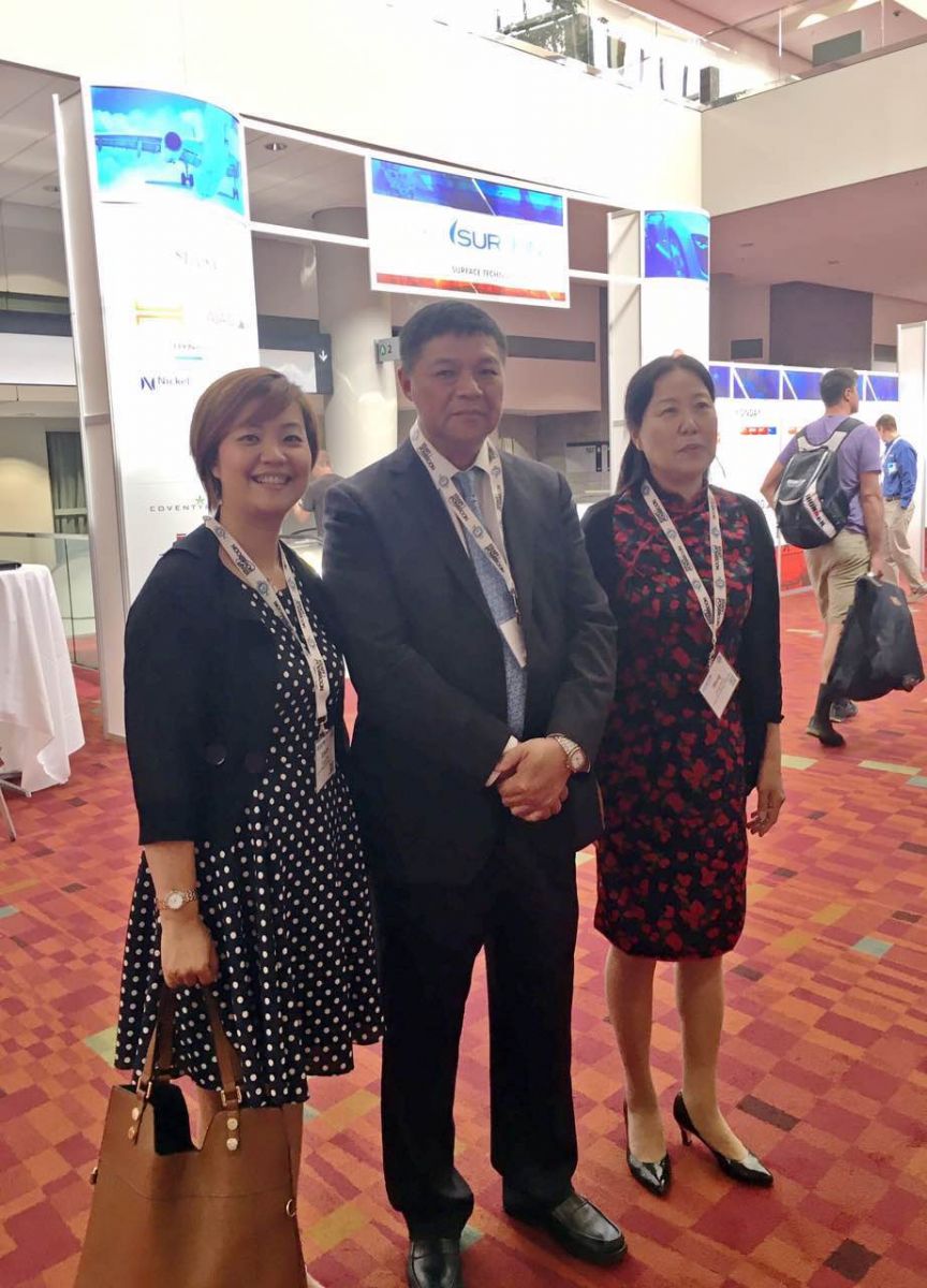 2017年6月19日,松石科技朱祎瑋經理隨中國表面工程行業代表團一同出席SUR/FIN 2017美國表面精飾年會暨展覽會。代表團由中國表面工程協會副理事長兼秘書長馬捷帶領。
